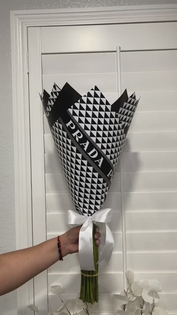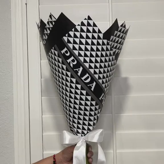Introducing our exquisite designer floral wrapping paper collection! Elevate your gift-giving experience with our luxurious crafted wrapping paper featuring stunning Prada-inspired floral designs. Make a lasting impression with our exclusive floral wrapping paper and bring a touch of couture to your gift-giving occasions.